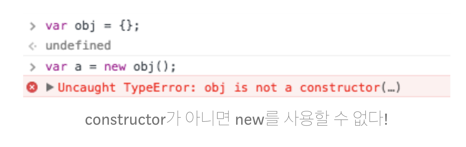 Constructor 자격이 부여되면 new연산자를 통해 객체를 만들어 낼 수 있게 된다. 이것이 함수만 new 연산자를 사용할 수 있는 이유이다. constructor가 아니면 new 연산자를 사용할 수 없다.